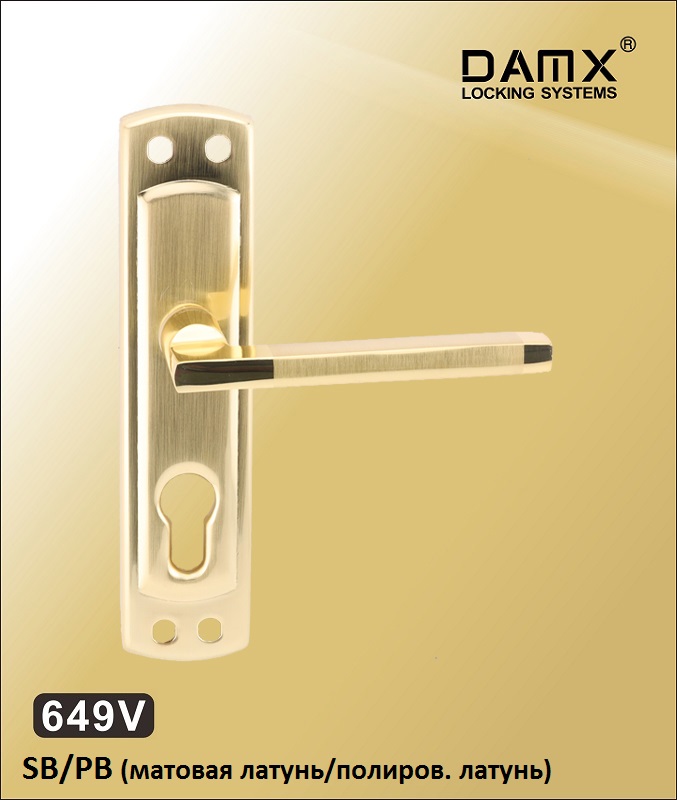 Главная / Дверные ручки на планке DAMX (Эконом) / Под замок 55 мм / DAMX 649V SB/PB Ручка DAMX 649VПланка сталь, ручка алюминий, комплект 2 шт. К замкам ML55P, ML55V и любым другим с межцентровым 55 мм. Квадрат 8 мм, разрезной. | ||||||||||||||||||||||||||||||||||||